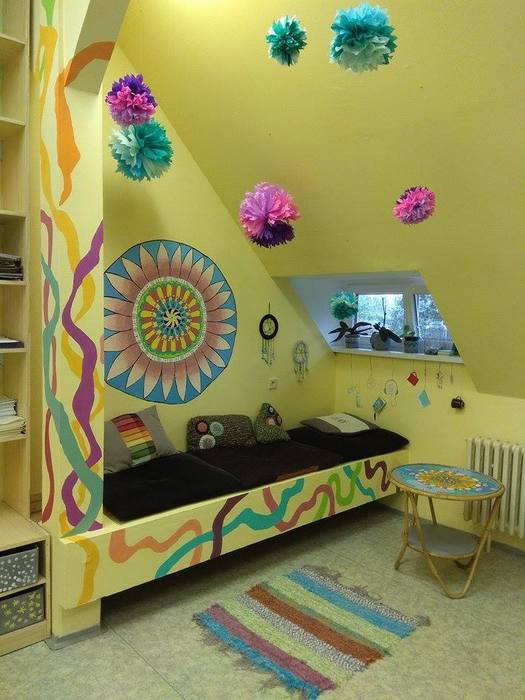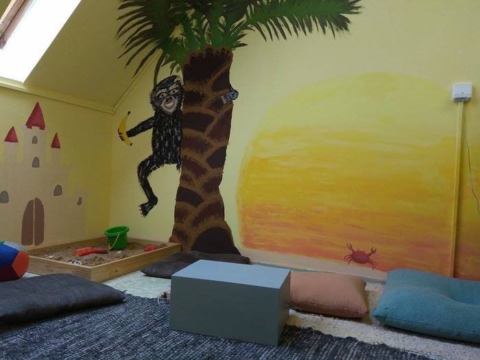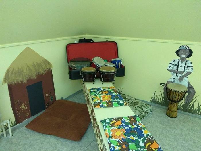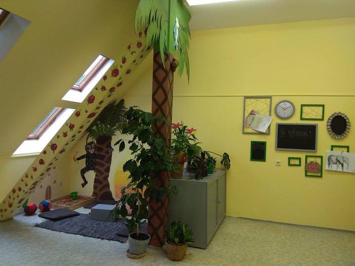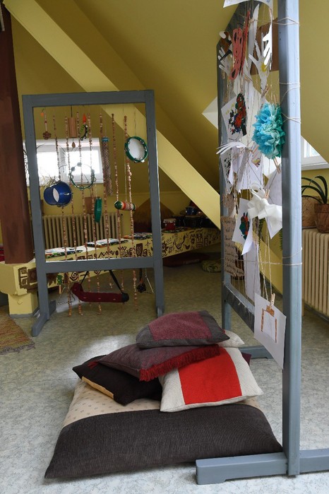 Ateliér je místnost, kde děti mohou trávit svůj volný čas a kde probíhají skupinové terapie. Zajímavý je příběh postupného zvelebování ateliéru. Přes prázdniny 2017 jsme společně s dětmi vymýšleli různé návrhy a koncepty, jak místnost vyzdobit, zútulnit a poté jsme tyto nápady měnili vlivem tvůrčího procesu. Výsledek si můžete prohlédnout zde, my jsme na něj moc pyšní a hlavně na děti, které se s radostí a odvahou vrhaly do práce.